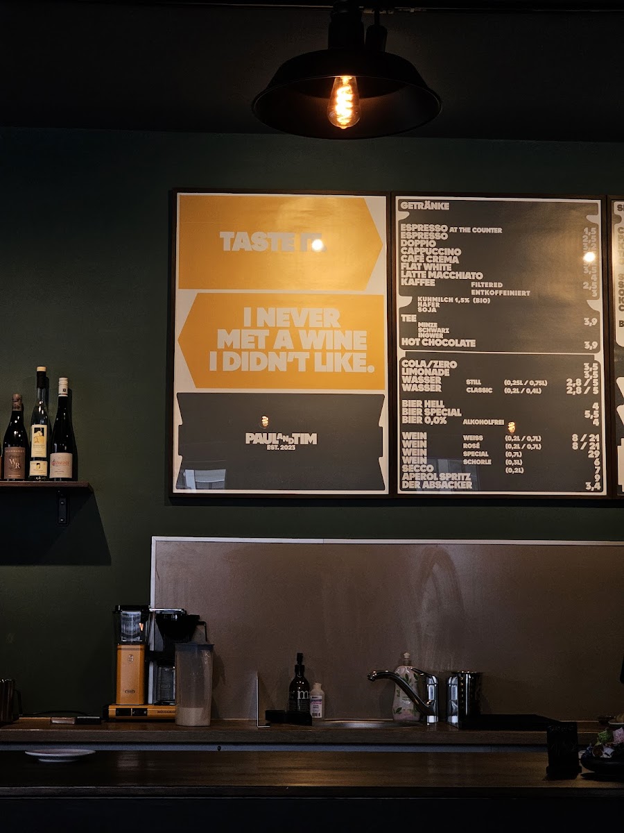 As you step into Paul and Tim, the rich aroma of freshly brewed coffee envelops you, promising a delightful experience. This cafe stands out for its commitment to quality with a menu that boasts an impressive selection of craft beers alongside meticulously crafted coffee. Choose from a refreshing Oskars Lager by Oskar Blues Brewing at just €5.50, or try the local favorite Das schnelle Helle for a mere €3.50. For the adventurous palate, their rotating selection of IPAs—available for €5.50—tantalizes with a goldmine of flavors designed to surprise and inspire your taste buds.